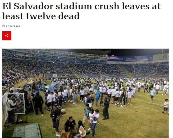 據(jù)英國廣播公司(BBC)報(bào)道,當(dāng)晚,圣薩爾瓦多庫斯卡特蘭球場舉行一場全國足球賽的四分之一決賽。不少因購買假票無法入場的球迷試圖強(qiáng)行擠入球場,其間發(fā)生人員踩踏,造成傷亡。多名傷者傷情較重。