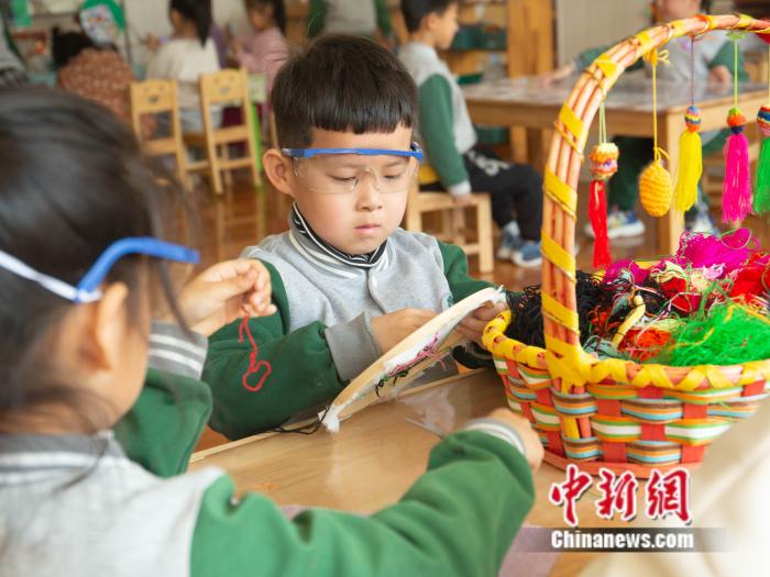 最初,老師會進行集體教學(xué),等孩子們都掌握相關(guān)技能后,就由孩子們自主活動,他們在一旁提供指導(dǎo)和保障孩子安全?!坝行┖⒆右粌商炀湍軐W(xué)會繡自己的名字。”王艷青說,這些活動后,許多孩子越來越自信。