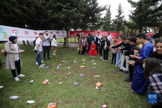5月31日,在阿爾及爾達(dá)拉利亞SOS兒童村,中國(guó)駐阿爾及利亞大使館、中國(guó)援阿醫(yī)療隊(duì)聯(lián)合中國(guó)建筑股份有限公司阿爾及利亞公司舉辦兒童節(jié)活動(dòng)。新華社發(fā)