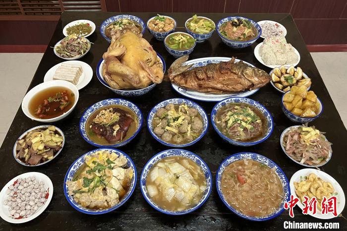 “四八席”有24道菜。即:四鋪桌、四壓桌、兩大件、八大碗、四小碗、兩糕點。 張文諳 攝