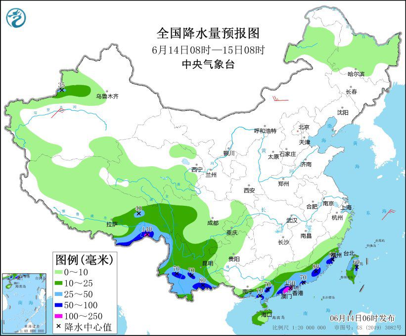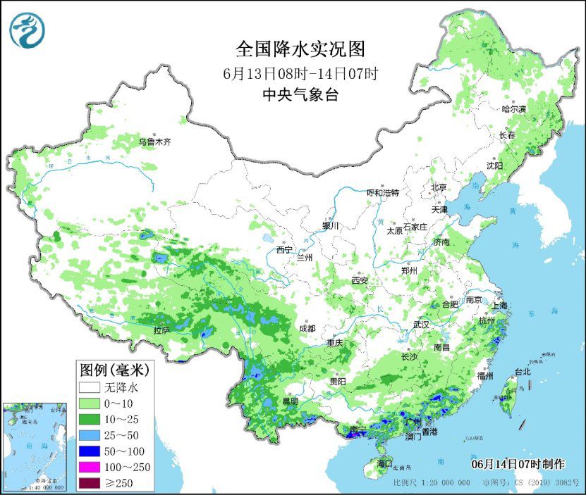 中央氣象臺今晨繼續(xù)發(fā)布暴雨藍(lán)色預(yù)警,預(yù)計今天,廣東中南部、廣西東南部、福建東南部、臺灣島中北部以及云南南部和西部、西藏東南部等地部分地區(qū)有大到暴雨,其中,廣東西南部沿海、西藏東南部等地局地有大暴雨。