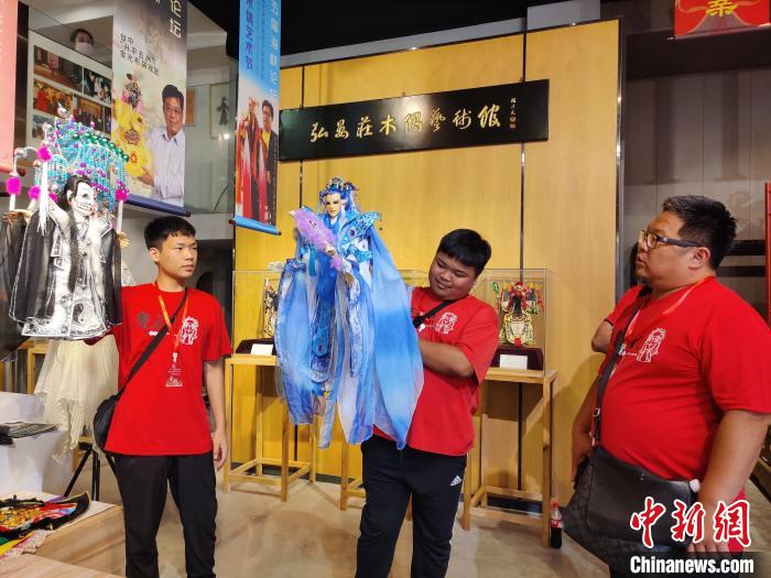 陳鵬安接受中新社記者采訪時說,自10歲開始學(xué)金光布袋木偶戲,至今已有近8年時間,課余時間與它為伴。“我的爸爸也是從事這個行業(yè)的,從小就喜歡看他表演?,F(xiàn)在,我想從他的手上接過這個接力棒。”