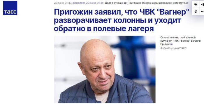 外媒:“瓦格納”已與白俄總統(tǒng)溝通,將停止行進(jìn)返回營(yíng)地