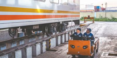 在肯尼亞內(nèi)羅畢,吳同明(左)與學(xué)員基魯姆瓦在車輛運(yùn)用車間檢查客運(yùn)車廂。2017年來到肯尼亞的中國(guó)師父吳同明是非洲之星鐵路運(yùn)營(yíng)公司機(jī)輛部車間工程師?!皩W(xué)員的積極主動(dòng)讓我印象深刻?!眳峭髡f?;斈吠哒f:“未來希望更多的中國(guó)老師來到肯尼亞,與我們一同推動(dòng)基礎(chǔ)設(shè)施建設(shè)?!?/p>