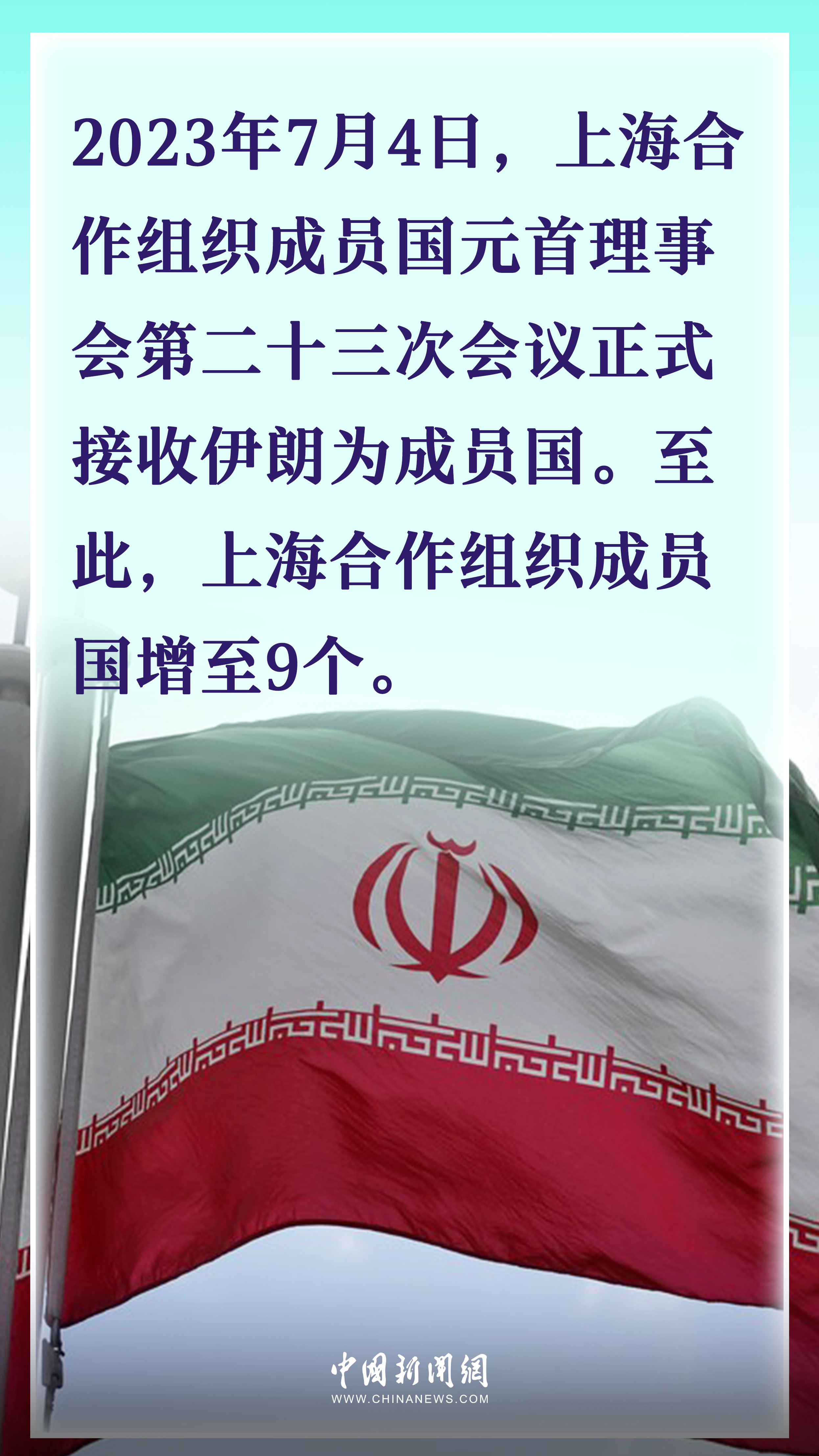 上合組織成立于2001年,創(chuàng)始成員國為中國、俄羅斯、哈薩克斯坦、吉爾吉斯斯坦、塔吉克斯坦和烏茲別克斯坦6國。隨著時(shí)間推移,上合“朋友圈”不斷擴(kuò)容。2017年,上合組織給予印度和巴基斯坦成員國地位。2023年7月4日,上合組織再次注入“新鮮血液”,伊朗被正式接受為第9個(gè)成員國。