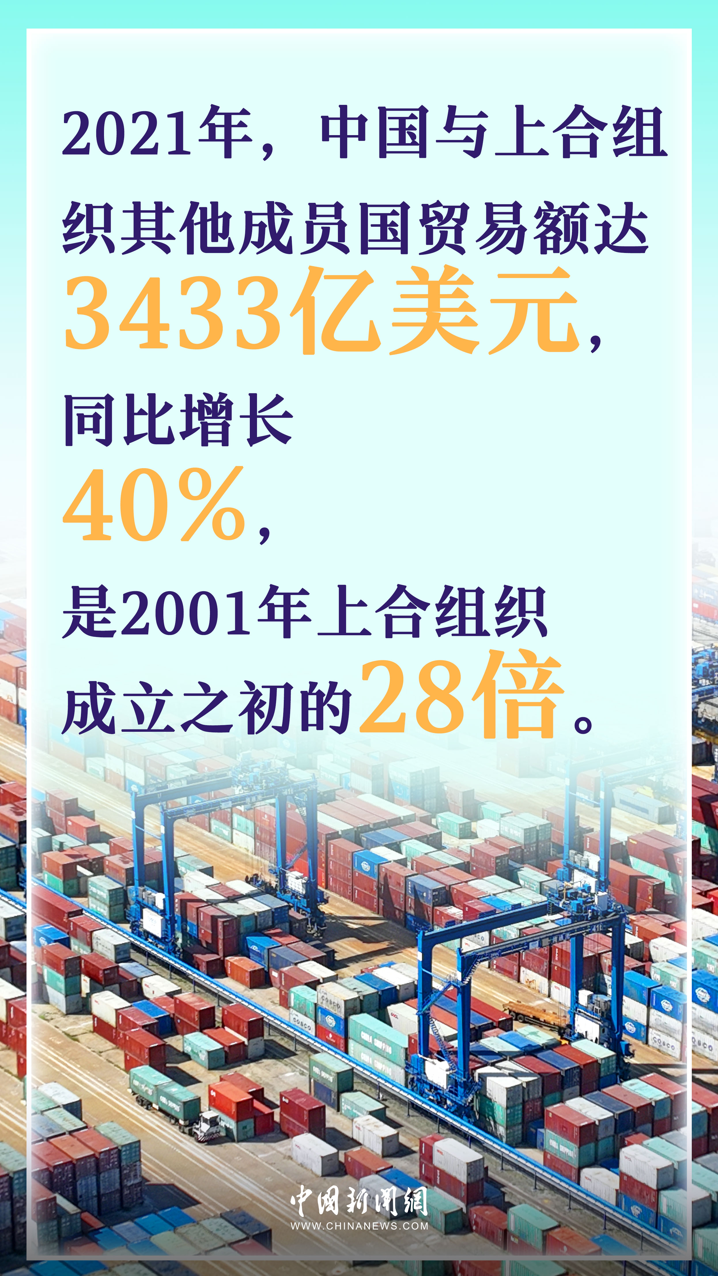 據(jù)統(tǒng)計(jì),2021年,上合組織成員國國內(nèi)生產(chǎn)總值總和約為23.3萬億美元,占全球GDP近四分之一,比成立之初擴(kuò)大了13倍多。其中,中國的作用也在日益凸顯,同年,中國與上合組織其他成員國貿(mào)易額達(dá)3433億美元,同比增長40%,是2001年上合組織成立之初的28倍。