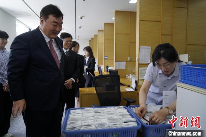 中新社首爾7月7日電 (記者 劉旭)當(dāng)?shù)貢r(shí)間7日,中國(guó)駐韓國(guó)大使邢海明赴首爾中國(guó)簽證申請(qǐng)服務(wù)中心調(diào)研,了解中心運(yùn)營(yíng)情況,慰問中心工作人員,并同現(xiàn)場(chǎng)簽證申請(qǐng)人親切交流。使館領(lǐng)僑處公參鐘洪糯陪同。