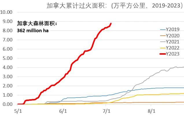 加拿大火燒面積的累計圖。劉志華供圖