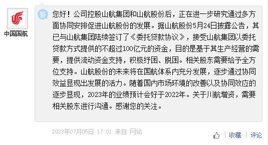 對于上述收購,中國國航于7月5日在投資者互動(dòng)平臺(tái)回應(yīng)稱,公司控股山航集團(tuán)和山航股份后,正在進(jìn)一步研究通過多方面協(xié)同安排促進(jìn)山航股份的發(fā)展。