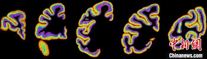 圖為不同類型細胞在獼猴大腦上的分布切片?!≈袊茖W(xué)院腦科學(xué)與智能技術(shù)卓越創(chuàng)新中心 供圖