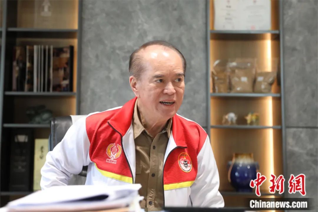 印尼龍獅運動聯(lián)合會總主席丘昌仁在雅加達(dá)接受中新社“東西問”欄目專訪。李志全 攝