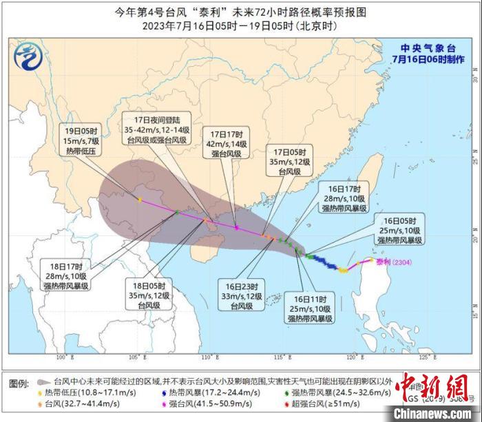 臺(tái)風(fēng)“泰利”未來(lái)72小時(shí)路徑概率預(yù)報(bào)圖?!≈醒霘庀笈_(tái)制圖
