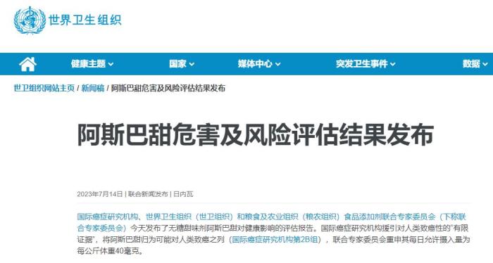 針對阿斯巴甜,世界衛(wèi)生組織官網發(fā)布的文章指出,JECFA認為,所評估的數據表明,沒有充分的理由改變以往確定的阿斯巴甜日容許攝入量,即每公斤體重40毫克以內,并重申人們可在這一限度內放心食用。