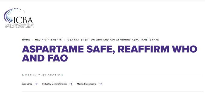 同一天,國際飲料協(xié)會委員會(ICBA)發(fā)布文章稱,目前含阿斯巴甜的食品和飲料是安全的。ICBA還強調,IARC不是食品安全機構,它現在正式承認,阿斯巴甜造成的危害并不比蘆薈和其他數百種物質的危害大,這些物質根據IARC描述都屬于證據“有限”和“不完全充分”的分類。