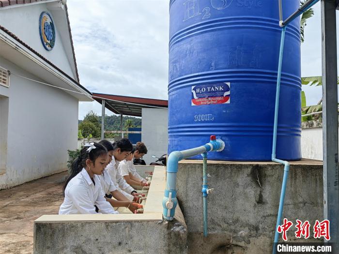 2023年6月,俄勒塞村小學的學生正在使用凈水系統(tǒng)。 中新社記者 楊強攝