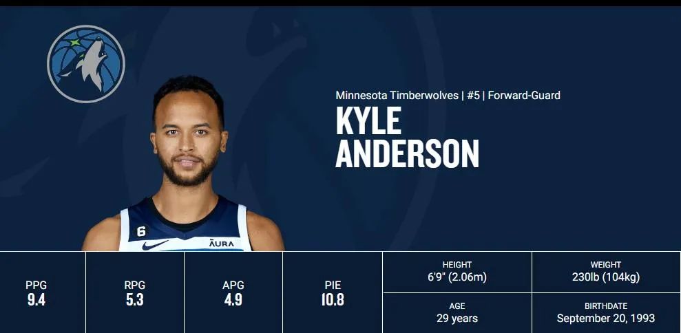 1993年9月出生的安德森將年滿(mǎn)30周歲,身高兩米零六的他于2014年選秀中在第1輪第30順位被馬刺隊(duì)選中,如今效力于森林狼的他已是聯(lián)盟中身手最為全面的鋒衛(wèi)搖擺人之一。