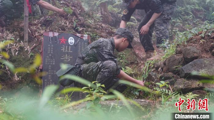 官兵徒步行軍至武夷山市洋莊鄉(xiāng)小漿村張山頭無名紅軍烈士墓群,開展“追尋紅色印記、賡續(xù)紅色血脈”參觀見學(xué)活動。中新社記者 張麗君 攝