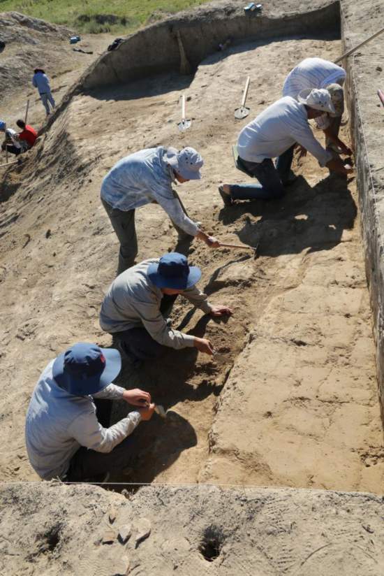 2018年7月5日,中國(guó)和吉爾吉斯斯坦考古人員聯(lián)合發(fā)掘吉爾吉斯斯坦紅河古城西側(cè)佛寺遺址。新華社發(fā)(受訪者供圖)