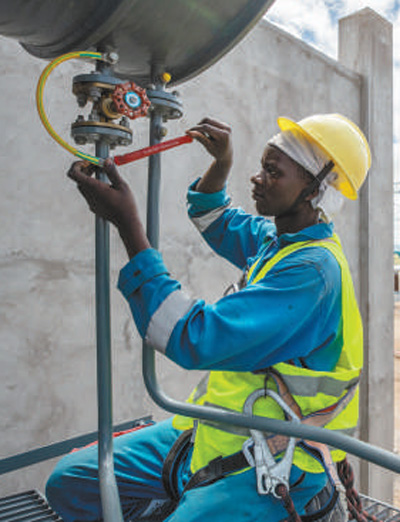 當(dāng)?shù)毓と嗽陧?xiàng)目現(xiàn)場工作。