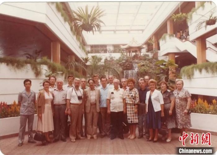 1983年10月,應(yīng)中國人民對外友好協(xié)會和中蘇友好協(xié)會邀請,時任蘇中友好協(xié)會主席謝爾蓋·列昂尼多維奇·齊赫文斯基率代表團(tuán)前往中國。圖為代表團(tuán)成員在廣州白天鵝賓館合影。圖片來源:庫利科娃個人搜集的檔案資料