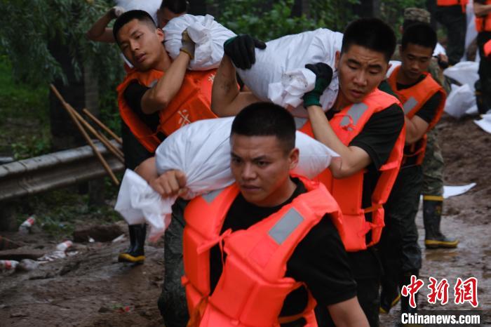 7月31日,永定河京原漫水橋附近發(fā)生漫溢,洶涌的洪水越過堤壩、漫上河岸。為保障沿岸居民安全,北京市門頭溝區(qū)水務(wù)局與區(qū)武裝部、區(qū)防汛抗旱指揮部實(shí)行統(tǒng)一協(xié)調(diào)調(diào)度,由武警北京總隊(duì)機(jī)動(dòng)第三支隊(duì)200名官兵對(duì)該處實(shí)施封堵作業(yè)。
