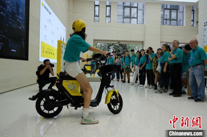 臺生體驗小遛共享電單車。 中新社記者 林波攝
