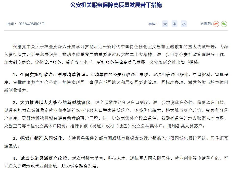 8月3日,公安部發(fā)布公安機關服務保障高質量發(fā)展若干措施,其中在戶籍政策方面提出一系列舉措。