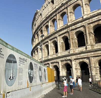 在意大利羅馬熱門(mén)景點(diǎn)斗獸場(chǎng),游客正在閱讀帶有中文解說(shuō)的標(biāo)識(shí)牌。