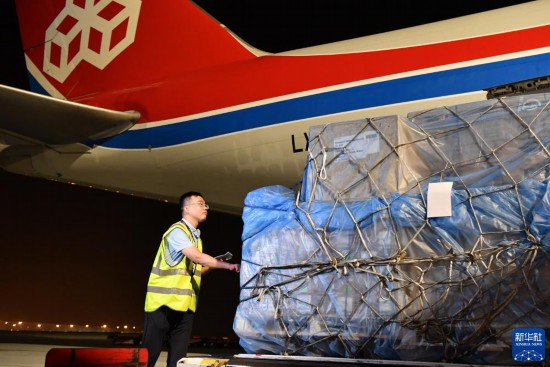 這是2020年3月22日,運(yùn)送防疫物資的鄭州—盧森堡航線貨機(jī)在中國鄭州新鄭國際機(jī)場(chǎng)裝機(jī)準(zhǔn)備起飛的資料照片。新華社記者 李嘉南 攝