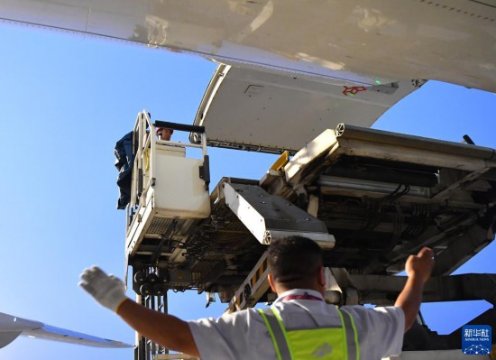 8月1日,工作人員在中國鄭州新鄭國際機(jī)場(chǎng)為一架盧森堡貨航貨機(jī)裝貨。新華社記者 李嘉南 攝