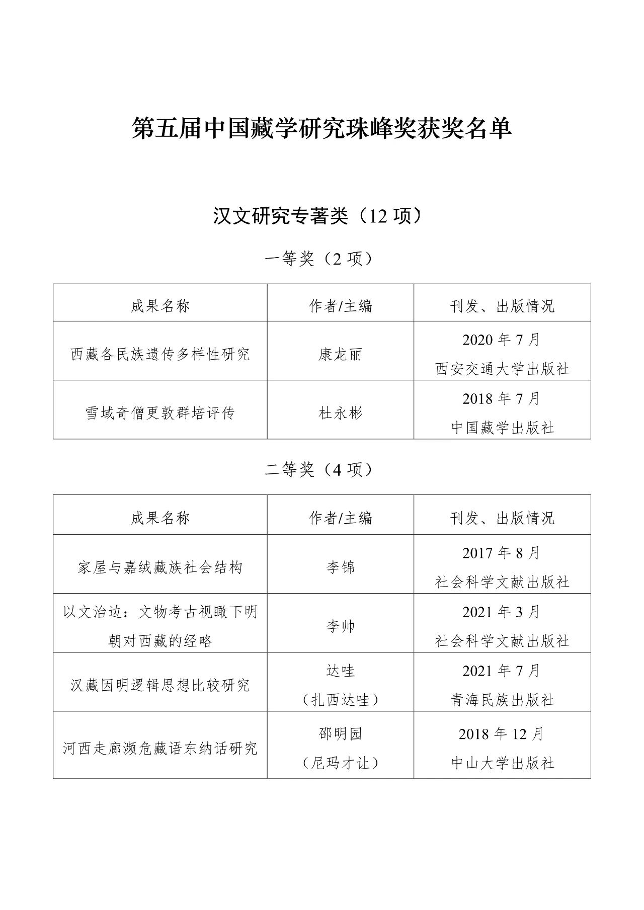 【關注】第五屆中國藏學研究珠峰獎獲獎名單