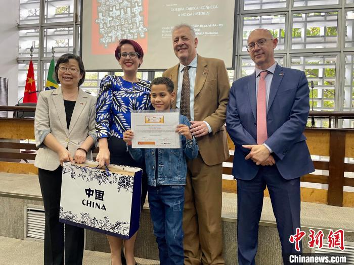 中國(guó)駐圣保羅總領(lǐng)事陳佩潔、圣保羅州外委會(huì)主席州議員毛里奇(Maurici)、圣保羅教育廳主任米里亞姆·普拉多(Miriam Prado)、圣保羅州議員保羅·菲奧里洛(Paulo Fiorilo)、巴西華人協(xié)會(huì)會(huì)長(zhǎng)葉周永,以及州議會(huì)代表、多家學(xué)校的師生代表和華僑代表等出席了頒獎(jiǎng)儀式。