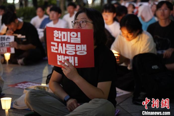 8月18日晚,韓國民間團(tuán)體“停戰(zhàn)70年朝鮮半島和平行動”在首爾市中心舉行燭光集會,抗議韓美即將舉行的大規(guī)模聯(lián)合軍事演習(xí)?!≈行律缬浾?劉旭 攝