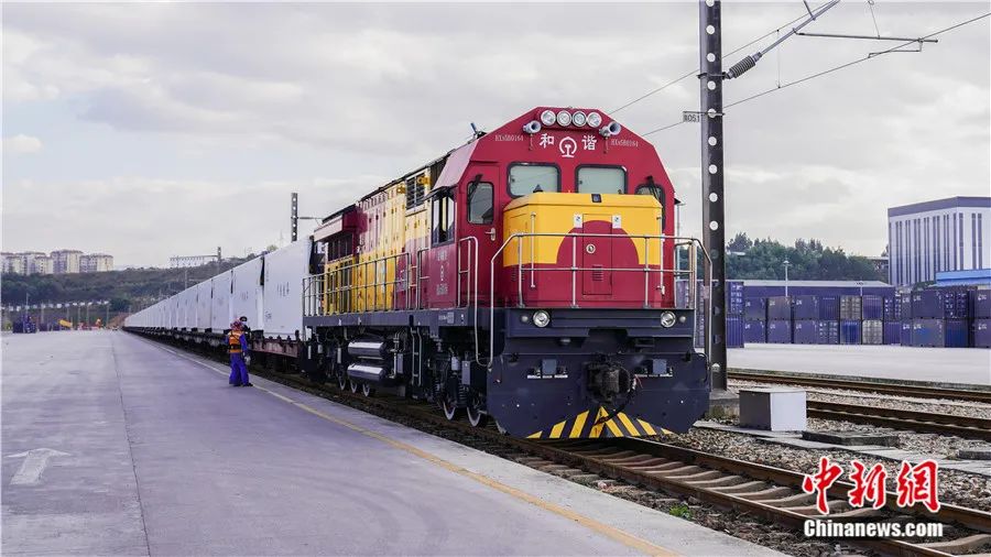 中老鐵路“瀾湄快線”國(guó)際貨物列車(chē)從昆明始發(fā)。王潘博 攝