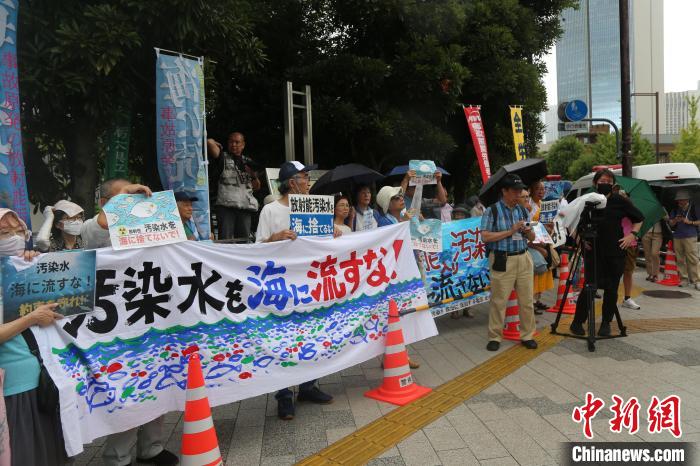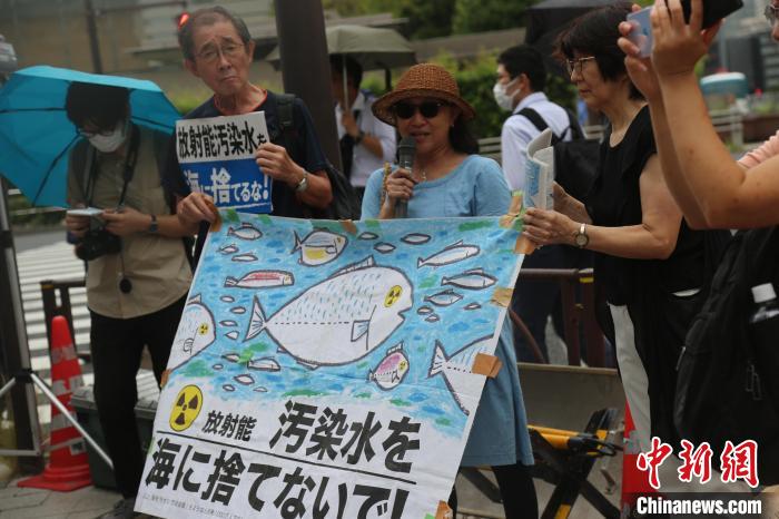 當?shù)貢r間22日上午,日本政府宣布,將于8月24日啟動福島核污染水排海。反對核污染水排海的民眾當日冒雨聚集在首相官邸前,舉起寫有“勿將核污染水排放入海”的橫幅或標語牌,高呼“勿將代價留給未來”“不要污染大?!薄奥犅牆O民的聲音”等口號,抗議日本政府啟動核污染水排海的決定。