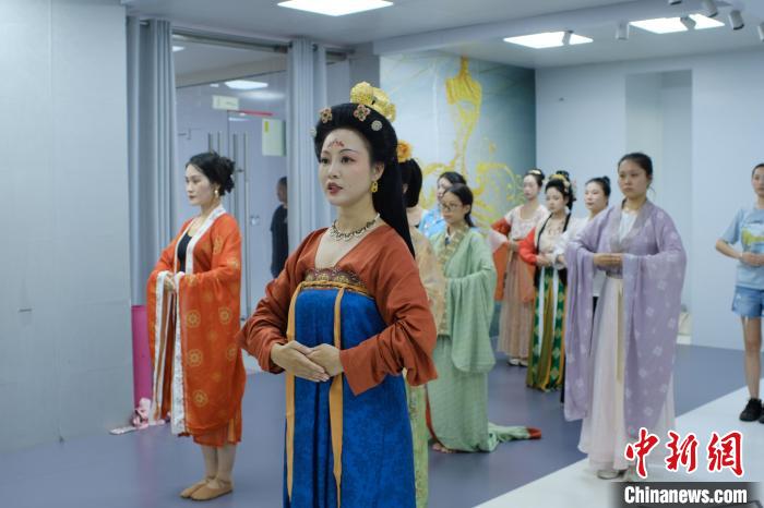 指導(dǎo)老師勞遠(yuǎn)霞認(rèn)為,漢服秀是對(duì)于華夏傳統(tǒng)禮儀的集中呈現(xiàn)?!拔覀儠?huì)參考唐代彩陶俑、古書畫和戲曲小說進(jìn)行動(dòng)作指導(dǎo),通過選手們的展示,讓這些頗具美感的古代傳統(tǒng)禮儀真正‘走入’現(xiàn)實(shí)中?!眲谶h(yuǎn)霞說。