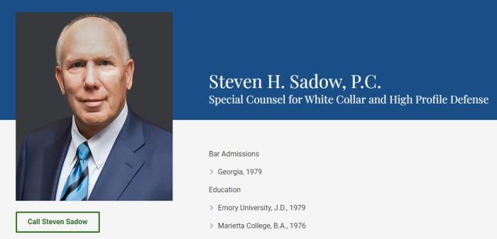 據(jù)報道,曾在佐治亞州為特朗普辯護(hù)的芬德林,將被一名來自亞特蘭大的律師薩多取代,他的網(wǎng)站簡介稱他是“為白領(lǐng)和知名人士辯護(hù)的特別律師”。