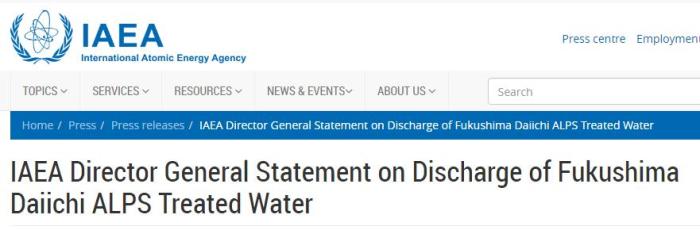 中新網(wǎng)8月24日電 據(jù)國際原子能機(jī)構(gòu)(IAEA)網(wǎng)站消息,當(dāng)?shù)貢r(shí)間24日,IAEA發(fā)布聲明稱,該機(jī)構(gòu)現(xiàn)場(chǎng)專家證實(shí)日本東京電力公司(東電)當(dāng)日開始將儲(chǔ)存在福島第一核電站的核污染水排入大海。