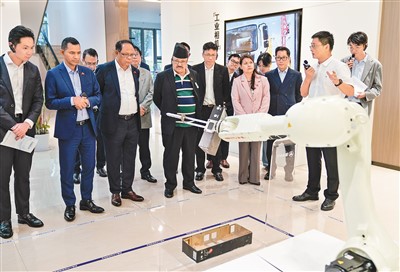 在自動檢測產(chǎn)品外觀缺陷的視覺質(zhì)檢機器人前,使節(jié)們停下腳步,饒有興致地觀看?;瘕堈f:“在數(shù)字經(jīng)濟推動下,人工智能等技術(shù)與傳統(tǒng)工業(yè)深度結(jié)合,讓人耳目一新?!?/p>