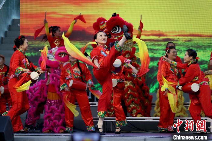當(dāng)?shù)貢r(shí)間9月1日,加拿大多倫多,中國(guó)傳統(tǒng)舞龍?jiān)诘谒膶谬埼幕?jié)開幕式上登臺(tái)表演。 中新社記者 余瑞冬 攝