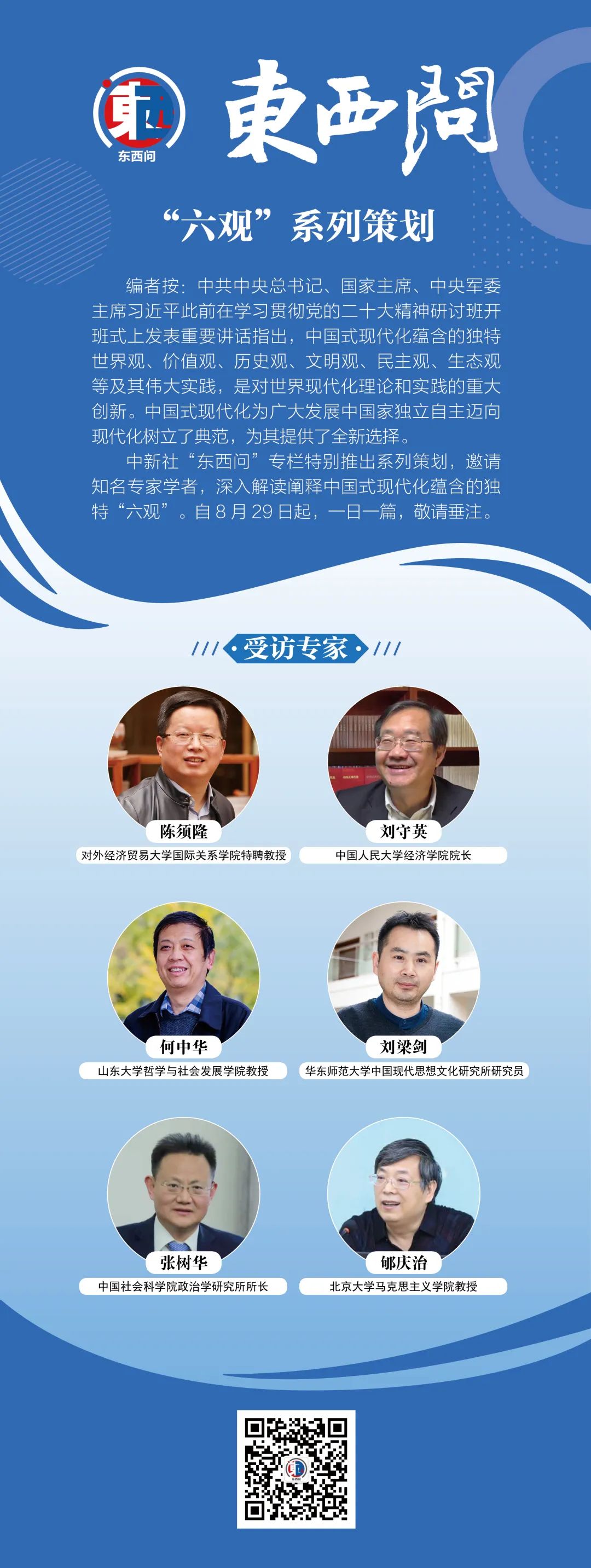 中新社“東西問”專欄特別推出系列策劃,邀請(qǐng)知名專家學(xué)者,深入解讀闡釋中國(guó)式現(xiàn)代化蘊(yùn)含的獨(dú)特“六觀”。 8月29日起播發(fā),一天一篇,敬請(qǐng)垂注。