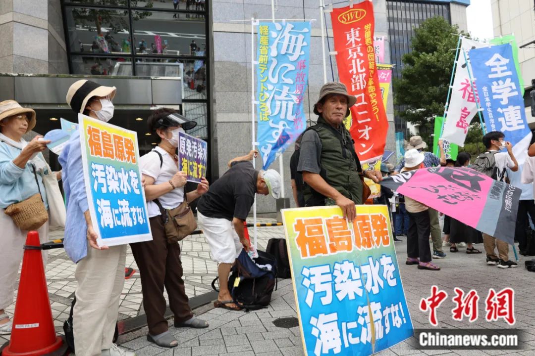 2023年8月24日,日本民眾在位于東京千代田區(qū)的東京電力公司總部附近舉行集會(huì),強(qiáng)烈反對(duì)日本政府當(dāng)天啟動(dòng)福島核污染水排海作業(yè)。朱晨曦 攝