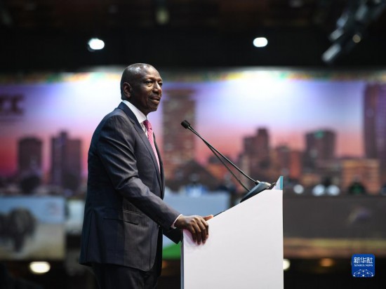 9月4日,肯尼亞總統(tǒng)魯托在內(nèi)羅畢舉行的首屆非洲氣候峰會開幕式上致辭。新華社記者韓旭攝