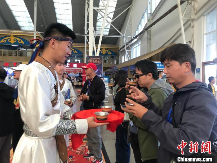 9月2日,臺(tái)灣少數(shù)民族參訪團(tuán)在輝騰錫勒草原黃花溝景區(qū)體驗(yàn)蒙古族迎賓禮儀。 中新社記者 陳建新 攝