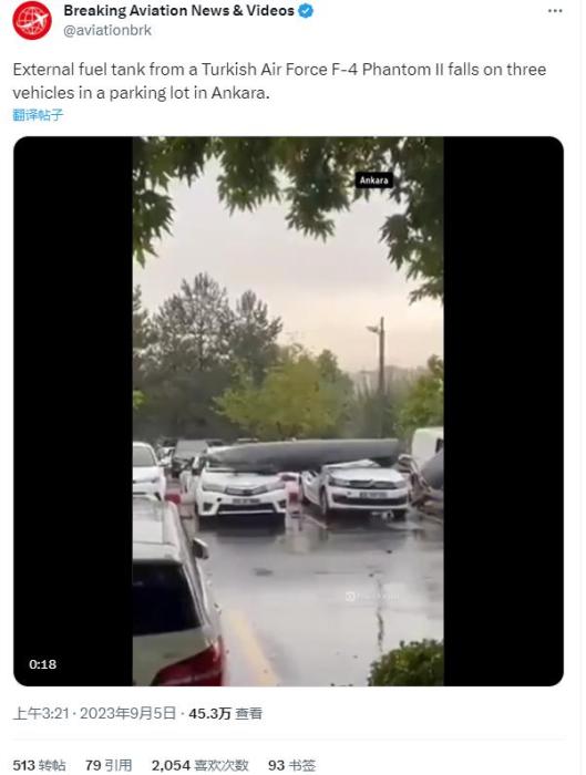 中新網(wǎng)9月6日電 綜合外媒報道,當(dāng)?shù)貢r間9月4日,土耳其空軍一架戰(zhàn)斗機在飛行途中油箱突然掉落,砸中安卡拉市一露天停車場的汽車,所幸未造成人員傷亡。