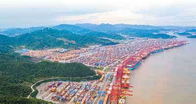 2023年6月,浙江省寧波舟山港穿山港區(qū)集裝箱碼頭,生產泊位“座無虛席”。