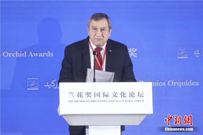 2023年9月8日,蘭花獎(jiǎng)國(guó)際文化論壇在北京舉行,伊薩姆·沙拉夫作主題演講。易海菲 攝