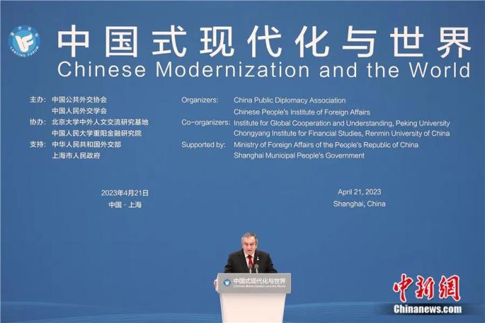 2023年4月21日,“中國(guó)式現(xiàn)代化與世界”藍(lán)廳論壇在上?!笆澜鐣?huì)客廳”舉辦,沙拉夫出席論壇開(kāi)幕式并致辭。殷立勤 攝