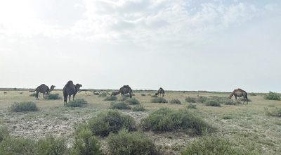 駱駝養(yǎng)殖戶努爾馬哈木別特的牧場里一片生機(jī)勃勃。