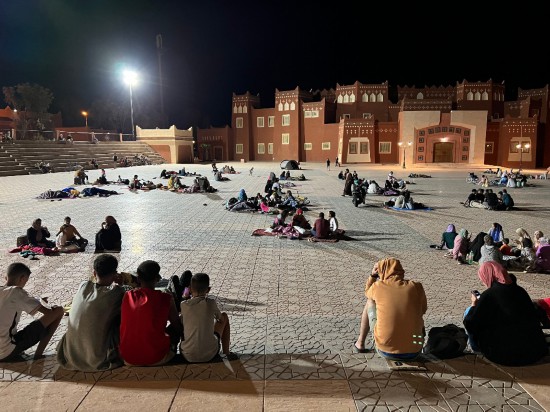 9月9日凌晨,在距離震中200多公里的摩洛哥瓦爾扎扎特市,居民在市區(qū)的空地避險(手機(jī)照片)。新華社記者王東震攝